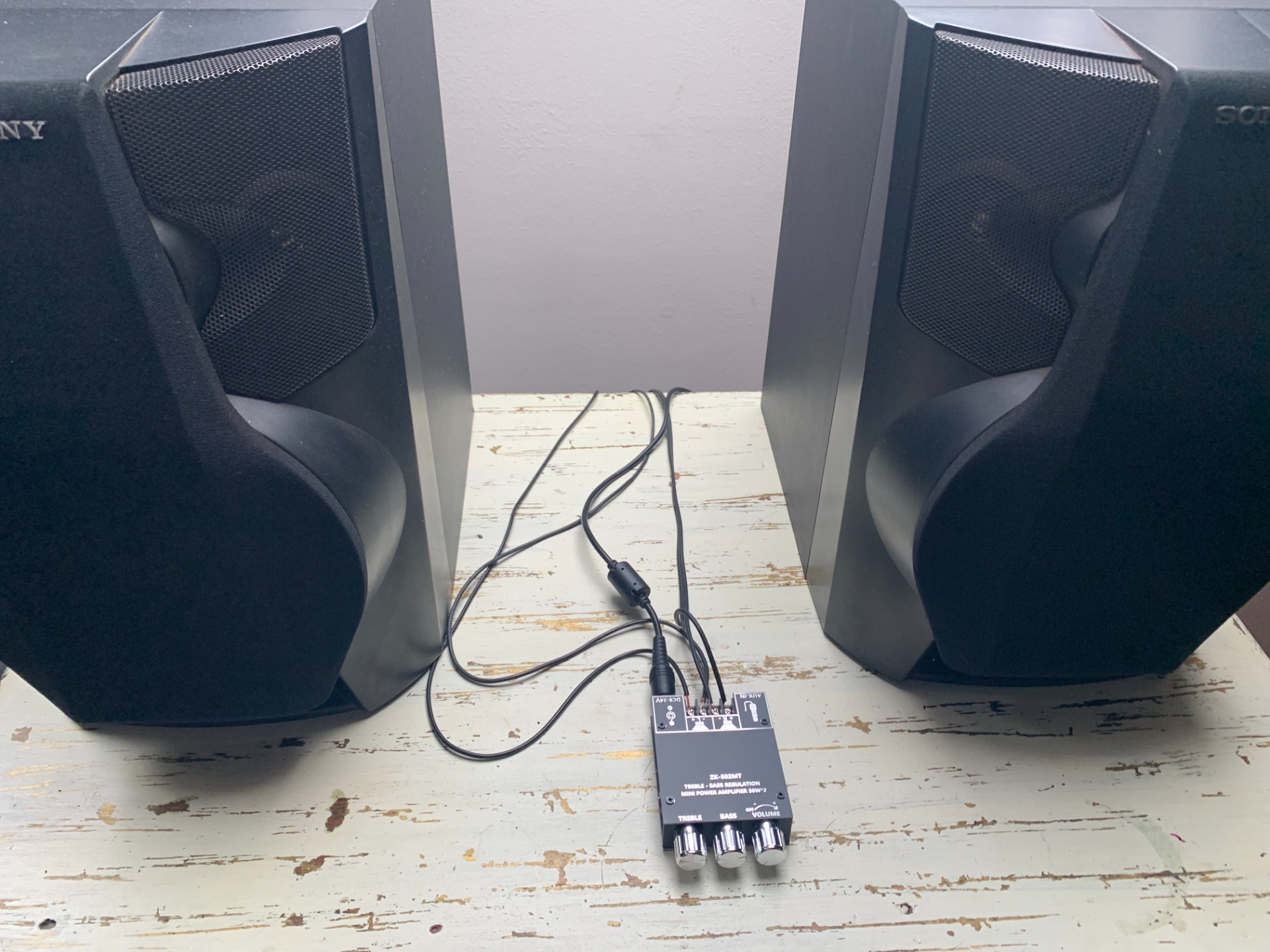Amplificador con Bluetooth, 50 watt x 2. para conectar con todo tipo de parlante vintage. Salida parlante derecho e izquierdo, con regulación de graves y agudos, también con conexión auxiliar.